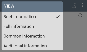 All elements of the list can be represented in brief form as well as in full. It is also possible to select common and additional information about the application.