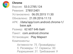 ● Свойства приложения – вывод окна с описанием свойств приложения: API, активности, сервисы, ресиверы, провайдеры, требования и разрешения и прочее.