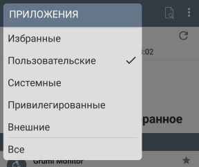 Выбор категории входящих в список приложений осуществляется командой всплывающего подменю "Приложения".