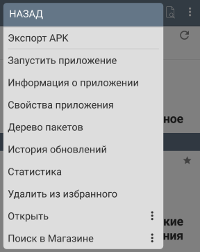 ● Экспорт APK – экспорт APK файла приложения в выбранную папку устройства.