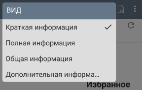 ● Вид – подменю выбора содержимого предоставляемой элементом списка информации.